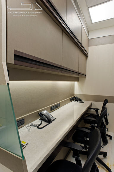 Although spanning a luxurious 5,000 Sq.Ft., our clients had a large number of requirements to be fulfilled from abundant storage and multiple meeting rooms to a staff dining room and spacious cubicles. Unlike a typical client brief, this diamond merchant desired something on a monochromatic scale that would ensure the focus remained solely on the work at hand. The overall space reflects a modern yet warm and inviting office that caters to all the requirements while still looking spacious and stylish.