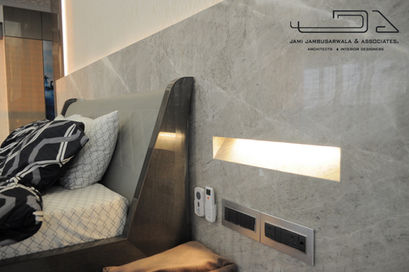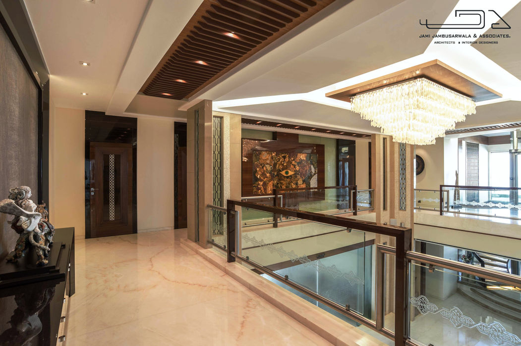 This sprawling 25,000 Square Foot duplex apartment with seven bedrooms was a treat to design. Visitors are at once in awe as they enter into the atrium, designed to span the entire height of the apartment. Be-spoke stone mosaic set on either side of the atrium draws the eye up to the dramatic crystal chandelier which was entirely custom-designed in collaboration with artists from Murano, Italy. Comprising over 200 individually blown crystal spirals, this was truly a work of art in itself. An sweeping spiral staircase snakes around a glass tubed elevator that was custom built for the apartment. The seven seater home theatre complete with state of the art technology and acoustics was designed as the central space for the family to come together at the end of the day. Each of the bedrooms and en suite bathrooms reflects a unique colour and material palette that brings out the personalities of the occupants. The dramatic Black Marquina Marble and Mango Onyx bathroom with steps leading to a sunken Jacuzzi is truly one of a kind.